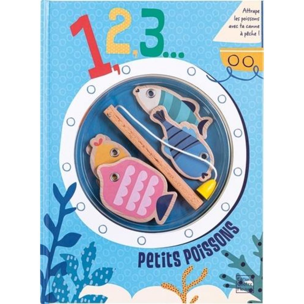 Un livre-jeu pour pêcher des petits poissons et découvrir le monde de la mer. Avec une canne à pêche et 5 poissons magnétiques ! Youpi ! Aujourd'hui Papi m'emmène pêcher sur son bateau. Dans la mer, nous apercevons des pieuvres, des tortues, et même des dauphins ! Comme le moussaillon de l'histoire, prends ta canne à pêche et attrape des poissons. A-t-il des rayures ? Est-il petit ou gros ? Quelle aventure !