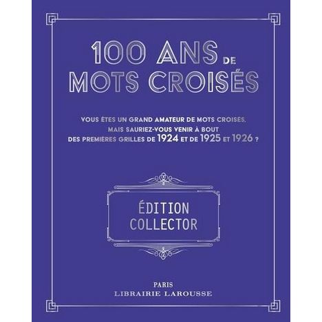 Inspirée des crosswords anglo-saxons, la première Mosaique mystérieuse a été publiée le 9 novembre 1924 dans le Dimanche-llustré. L'engouement est immédiat et des dizaines de titres de la presse francophone rivalisent d'ingéniosité pour divertir les lecteurs avec ces nouveaux jeux d'esprit. Replacez-vous dans le contexte de l'époque et mesurez-vous aux définitions astucieuses de ces premières grilles parues pendant les Années folles. Cette édition collector vous permettra de découvrir : ? 77 grilles qui ont marqué les débuts des mots croisés : - des définitions originales, parfois surprenantes pour un habitué des mots croisés contemporains, avec leurs solutions détaillées , - des commentaires, des indices, des informations sur les journaux de l'époque et sur cette nouvelle culture cruciverbiste , - des encadrés promotionnels qui accompagnaient la parution des grilles et qui témoignent de la vitalité du genre , - un lexique pour retrouver les mots anciens qui ne figurent plus dans nos dictionnaires.