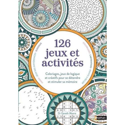 Découvrez votre compagnon idéal de détente avec 126 jeux variés ! Un cahier grand format qui stimule vos capacités cognitives tout en vous offrant des moments calmes loin des écrans. Un recueil complet de jeux de réflexion, de concentration et de détente spécialement conçu pour les adultes. > Prendre du temps pour soi et se concentrer sur une activité agréable aide à se sentir mieux, à se ressourcer et à chasser le stress. > Une grande variété de puzzles et d'activités réunies en un seul livre pour le plaisir et la détente : coloriages, sudoku, labyrinthes, points à points, hashi, jeu des différences, hanjie... Validé par le Dr. Gareth Moore, expert en stimulation cognitive, chaque activité est soigneusement élaborée pour offrir une progression adaptée. Un format pratique qui vous accompagne partout, idéal pour vos pauses détente ou vos trajets quotidiens, mais aussi pour les vacances et les longs voyages !