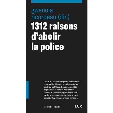 D'où vient l'idée d'abolir la police et que recouvre-t-elle au juste ? Si la police ne nous protège pas, à quoi sert-elle ? Comment dépasser la simple critique de la police pour enfin en finir avec elle ? 1312 raisons d'abolir la police tente de répondre à ces questions, et propose de riches réflexions critiques sur les liens entre l'abolitionnisme pénal et la race, le handicap ou le travail sexuel notamment. L'ouvrage porte également sur les mobilisations contemporaines pour l'abolition de la police en Amérique du Nord, en retraçant leur généalogie et en explorant leurs propositions stratégiques, leurs expériences et les débats qui les traversent. Les textes rassemblés dans cette anthologie commentée brossent un portrait vif et puissant du mouvement pour l'abolition de la police, dans toutes ses nuances et hors des clichés réducteurs. Le recueil comprend des contributions de militant.e.s et d'universitaires francophones et anglophones inédites.