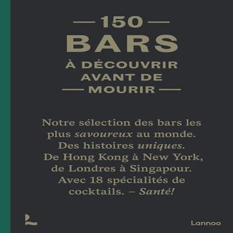 Le guide best-seller des bars finalement disponible en français. Plus de 17 000 exemplaires déjà vendus. Le premier livre de la série à succès des 150 : de magnifiques ouvrages qui se reconnaissent au premier coup d'oeil. Depuis la parution de 150 bars à découvrir avant de mourir en version anglaise en 2018, plus de 17 000 exemplaires ont été vendus. L'heure était venue de le mettre à jour, dans une nouvelle version enrichie de 50 bars inédits et de la publier en français. Découvrez ces bars du monde entier qui méritent le détour en raison de leurs délicieux cocktails, de leur cadre exceptionnel ou de leur atmosphère authentique. Sommelier et fin connaisseur des spiritueux, Jurgen Lijcops vous entraîne dans une tournée mondiale des bars et vous révèle au passage les meilleures recettes de cocktails.