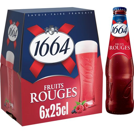 1664 Fruits Rouges offre en bouche des saveurs délicates de framboise, sous une robe brillante aux reflets rouge rubis. Une bière rafraîchissante, qui marie le parfum gourmand des fruits rouges aux notes maltées d'une 1664.