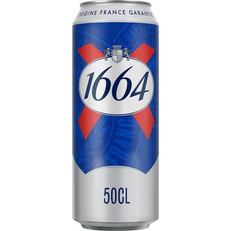 1664 Blonde, bière blonde emblématique brassée en Alsace, présente une robe jaune intense et une mousse dense. Elle offre des notes florales et un équilibre subtil entre finesse et amertume.