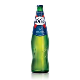 1664 Blonde, bière blonde emblématique brassée en Alsace, présente une robe jaune intense et une mousse dense. Elle offre des notes florales et un équilibre subtil entre finesse et amertume.