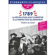 La Révolution française est-elle bien finie ? Pas sûr, répondent de jeunes gens de théâtre, qui jouent et créent ensemble textes, costumes et décors. Le nom de leur troupe : le Théâtre du Soleil. Mêlant textes improvisés et extraits de discours historiques, 1789 rappelle que l'esprit de la Révolution ne saurait être satisfait avant que soit assurée, pour tous, la réalisation du bonheur.