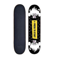 Plateau : 31 x 8 en érable 7 plis. Grip : 80AB noir. Truck : alu seagull 5 avec cushion en PVC. Roue(s) : PU 52x32mm. Roulements : abec 5