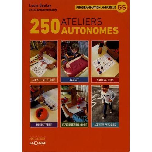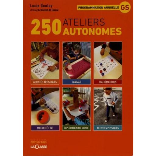250 ateliers autonomes, organisés par périodes scolaires, autour des grands domaines d'apprentissages suivants : la motricité fine le langage, oral et écrit les mathématiques l'exploration du monde les activités artistiques les activités physiques Inclus : Le guide (100 pages) présentant, pour chaque atelier, l'objectif visé, le matériel utile, la consigne et une photo d'enfant en situation. Cet ensemble présente 250 ateliers autonomes, conçus et testés en alte par une enseignante blogueuse, répartis par domaines (motricité fine, langage, mathématiques, arts...) et par périodes scolaires, à programmer sur toute l'année de GS. Pour chaque atelier, illustré en photo, sont indiqués le matériel, la consigne et l'objectif visé.