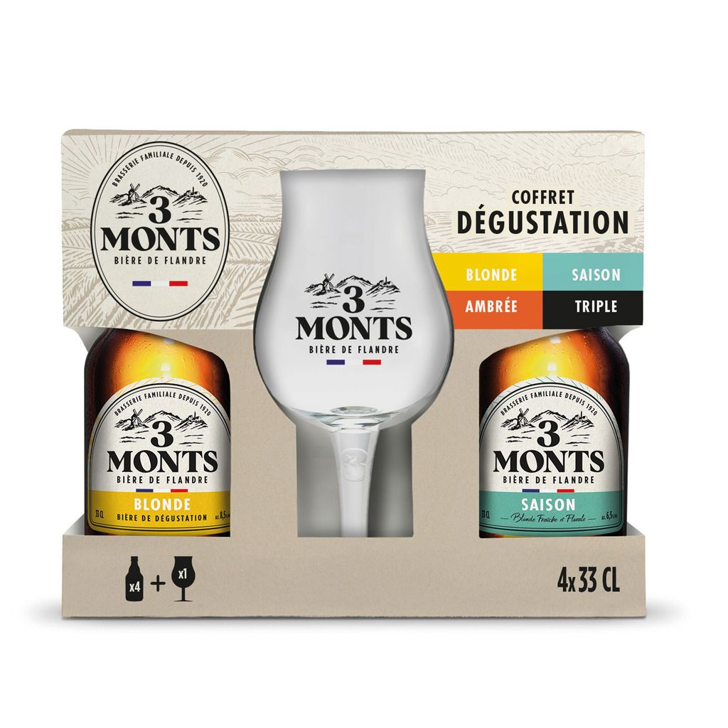 L'emblématique bière de Flandre 3 Monts est née en 1984 et marque pour la Brasserie le retour des bières de fermentation haute. La gamme s'est depuis étendue avec 3 autres recettes : Triple, Ambrée et Saison. Des bières au caractère affirmé, riches en goût, fabriquées à partir de matières premières choisies et d'une levure exclusive et spécifique.