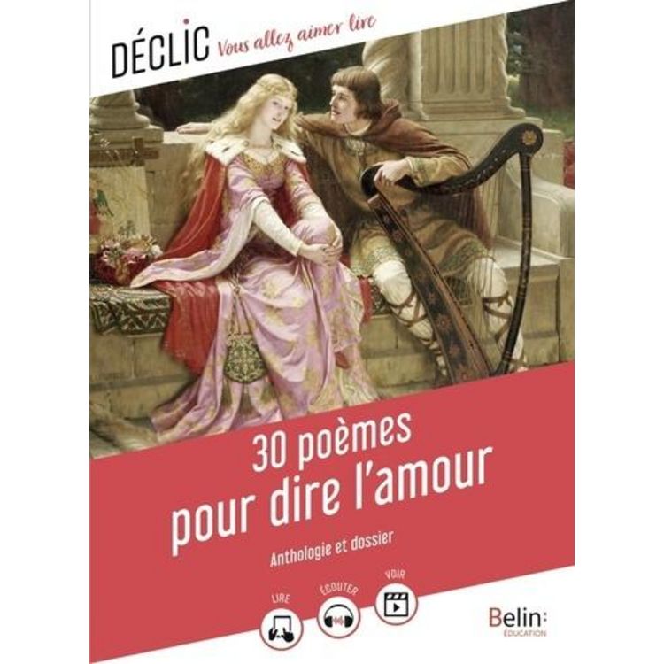 Choix des poèmes et dossier pédagogique de Florence Cognard Qui mieux que les poètes pour exprimer toute la beauté, la complexité et les variations du sentiment amoureux ? Coup de foudre ou séparation douloureuse, déclaration enflammée ou regret désespéré, vibrez à l'unisson des coeurs des poètes et découvrez les plus beaux poèmes d'amour du Moyen Age à nos jours. Les points forts de l'édition Déclic : LIRE Le texte enrichi de nombreuses images dans une mise en page vivante et aérée COMPRENDRE Des questionnaires et des activités ludiques pour s'approprier le texte RETENIR Un dossier complet et accessible pour retenir l'essentiel PROLONGER Un groupement de textes et des conseils pour compléter la lecture + ACCOMPAGNER De nombreux compléments numériques pour aider les élèves dans la lecture (des extraits lus par un comédien, des extraits vidéo à visionner sur Internet, des versions epub de l'ouvrage et du texte accessible aux élèves DYS disponibles dans les librairies numériques)