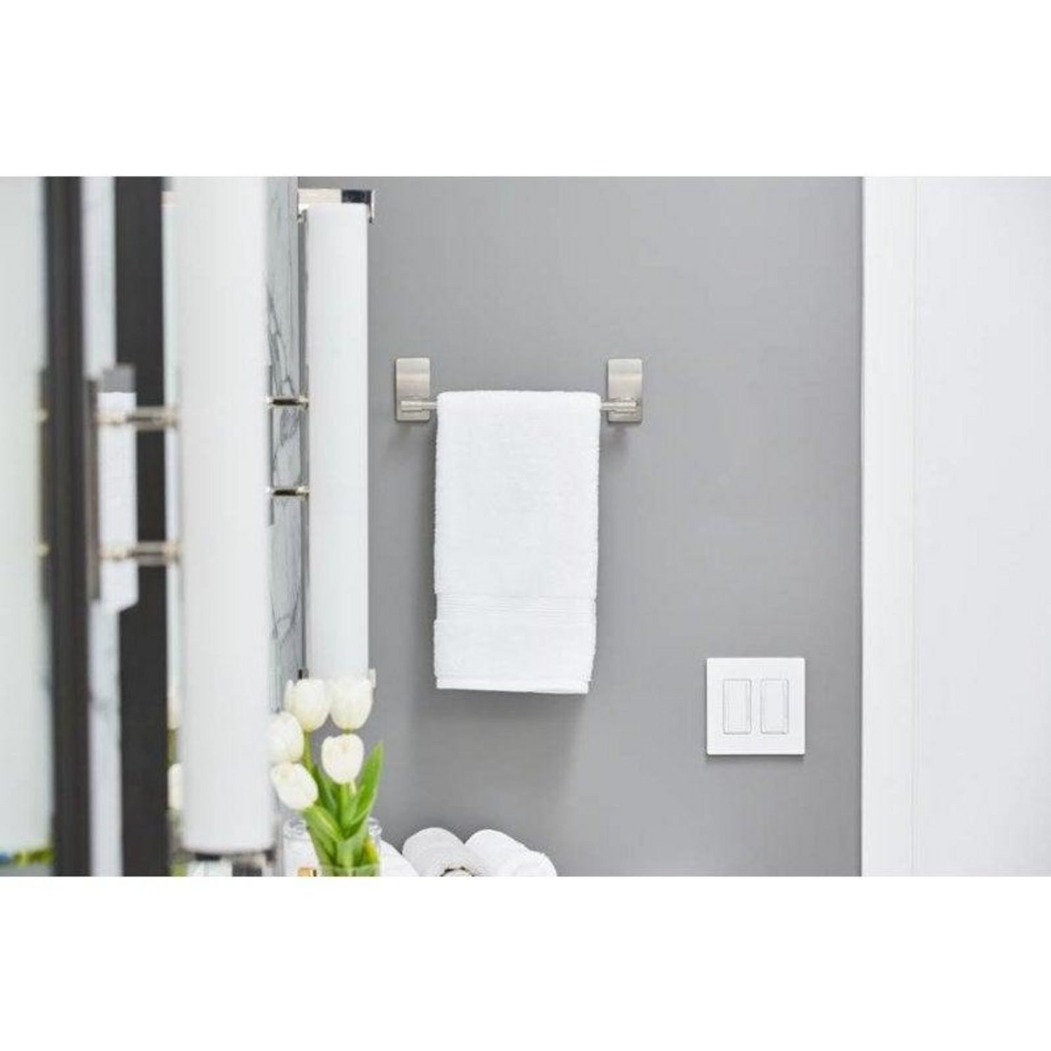 Nom du produit: Porte-serviettes Taille de la barre (en cm): 130 Largeur (en cm): 30 Usage du produit: Ils sont parfaitement adaptés aux environnements humides. Système de fixation: Adhésif Couleur: Nickel satiné Finition du produit: Brillant Marque du produit: COMMAND Charge maximale supportée (e