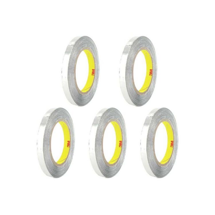 Leruban aluminium 3M 425 12 mm x 55 m x 5est constitué d'un support aluminium extra doux (alliage 1145-0) et d'un adhésif acrylique transparent. Le ruban peut être facilement découpé à des dimensions ou des formes spécifiques. Le ruban aluminium est utilisable pour des applications intérieures ou extérieures de longue durée. Il se caractérise par un très faible taux de vapeur d'eau lui permettant d'être un bon moyen de scellage. Il peut également être utilisé en tant que masquage dans le domaine de la galvanoplastie car il ne contamine pas les bains.