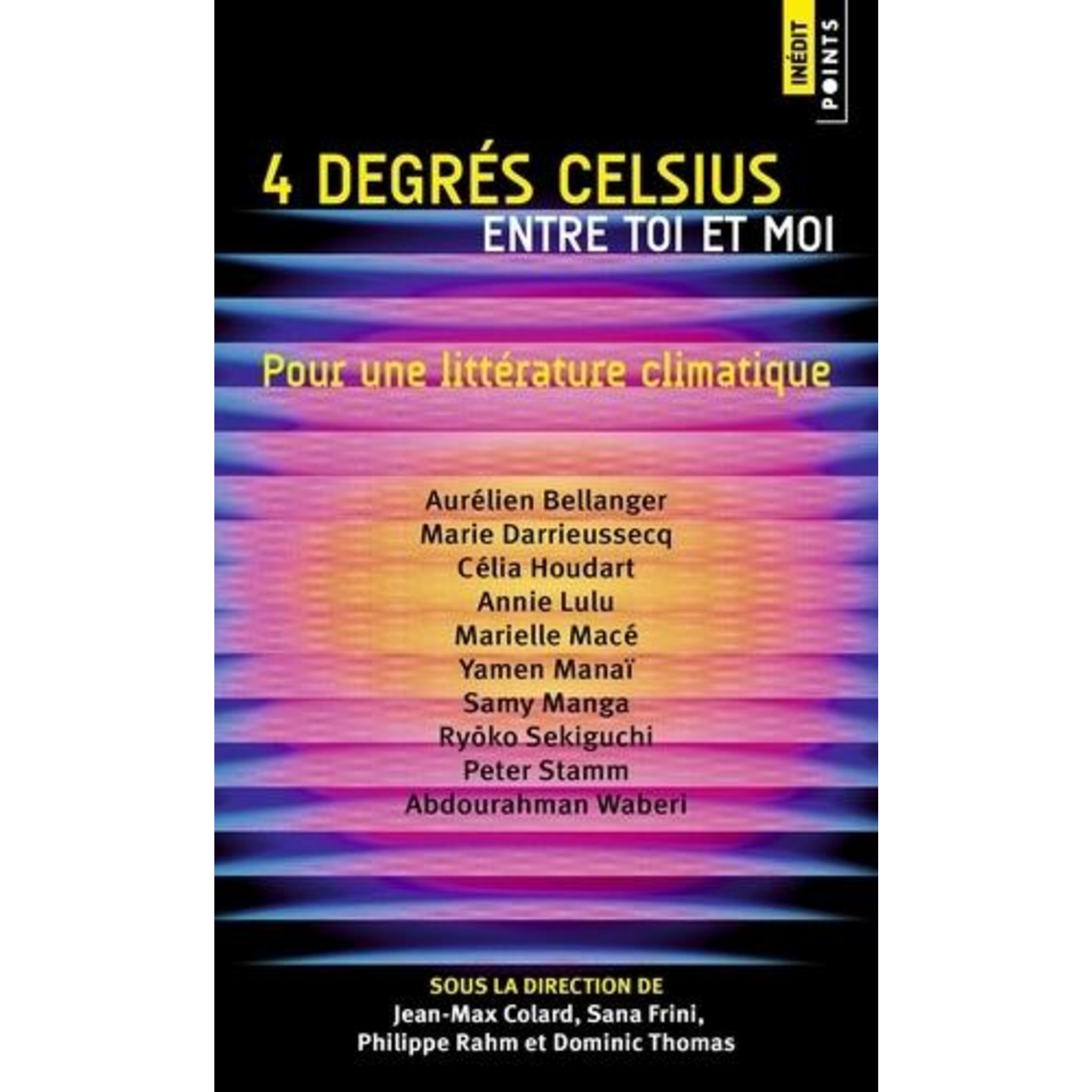 Dix nouvelles inédites qui nous plongent en 2100 au coeur des transformations humaines, culturelles, architecturales, sensibles, physiques provoquées par le changement climatique. Depuis quelques années, les sciences humaines ont restitué aux sujets non humains leur rôle dans le déroulement de l'histoire du monde. Explosions volcaniques, épisodes de sécheresse, épidémies sont autant de causes naturelles qui expliquent, en grande partie, les transformations de nos sociétés. Qu'en est-il en littérature ? Ne serait-il pas temps qu'un rôle majeur dans le déroulement du récit soit attribué au monde naturel ? Plutôt qu'un simple décor devant lequel se déploient les actions humaines, le climat devrait aujourd'hui être pleinement considéré comme l'un des acteurs principaux du roman, un personnage à part entière, suscitant tragédies et romances. C'est ce que l'on perçoit en germe dans les nouvelles inédites proposées par Aurélien Bellanger, Marie Darrieussecq, Célia Houdart, Annie Lulu, Marielle Macé, Yamen Manaï, Samy Manga, Ryoko Sekiguchi, Peter Stamm, Abdourahman Waberi qui ont été invités à imaginer le monde du réchauffement climatique, avec une hausse des températures de 4 degrés Celsius, celui de la planète à l'horizon de 2100. Sous la direction de Jean-Max Colard, Sana Frini, Philippe Rahm et Dominic Thomas.