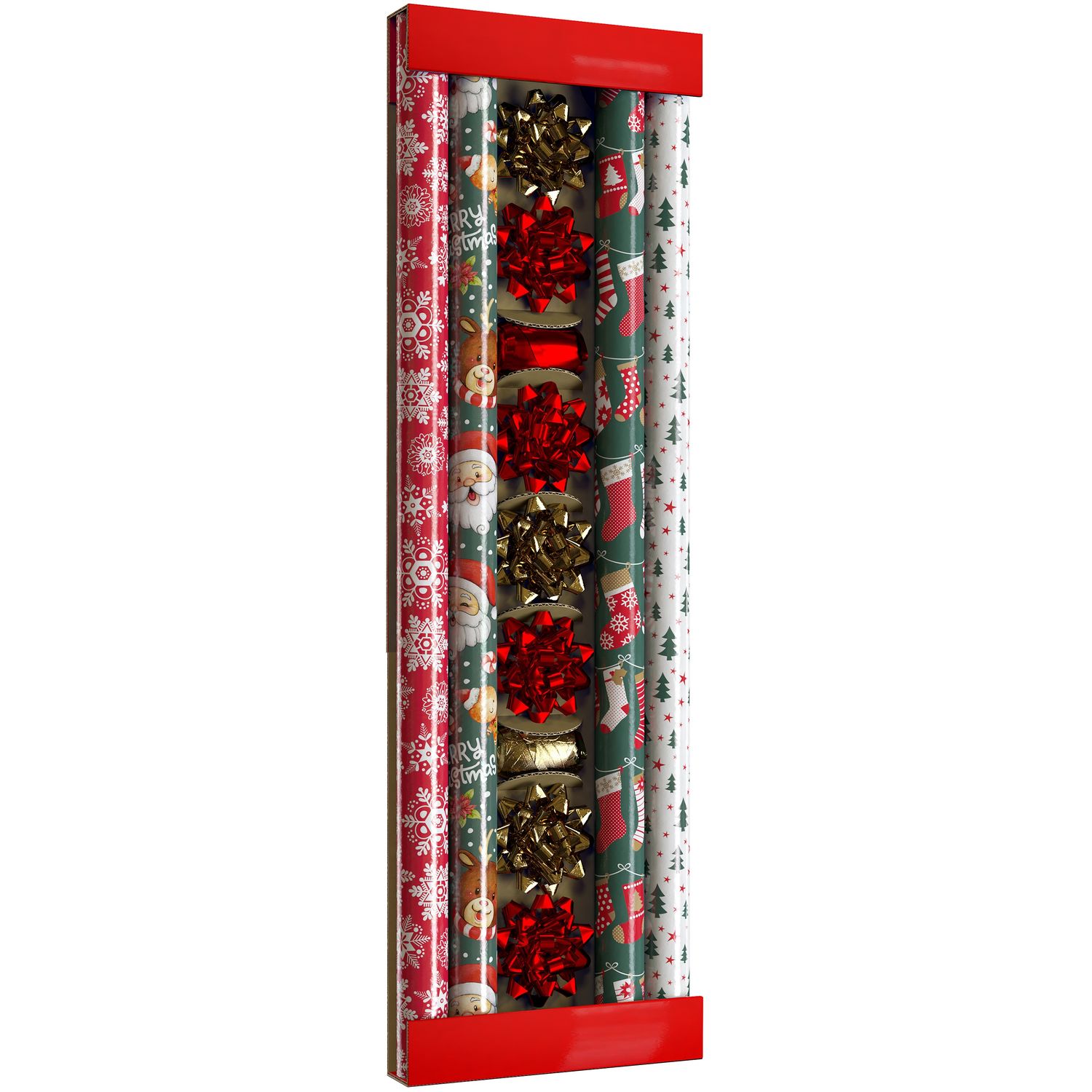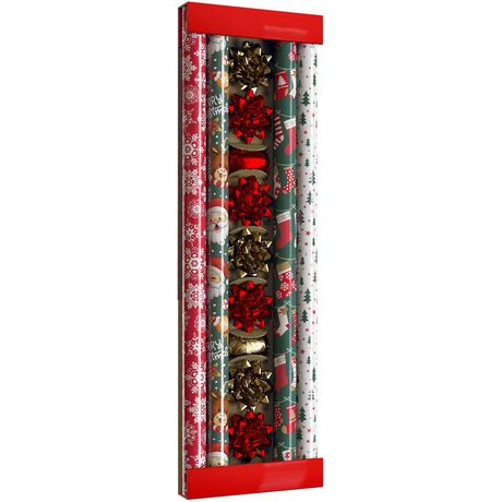 4 rouleaux de papier cadeau 200x70cm + 7 noeuds + 2 bolducs 5mmx10m