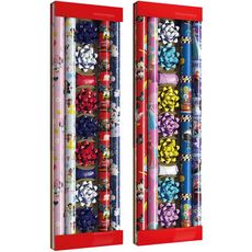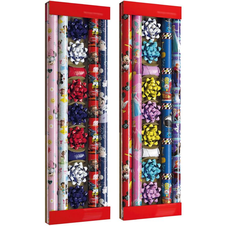 4 rouleaux de papier cadeau 200x70cm (Cars, Toy story, Princess et Frozen) + 7 noeuds + 2 bolducs 5mmx10m