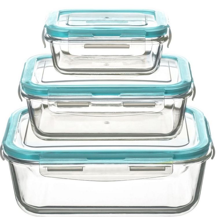 Lot de 3 boites en verre rectangulaire 23 x 18.5 x 13 cm
