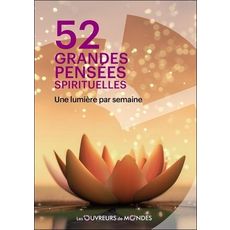 En savoir +52 grandes pensées spirituelles, pour se nourrir intérieurement semaine après semaine, auprès des plus grandes figures spirituelles de l'histoire de l'humanité, toutes traditions confondues. Ces 52 pensées peuvent être consultées semaine après semaine, dans l'ordre chronologique proposé (à la façon d'un almanach hebdomadaire) ou être feuilletées et ouvertes au hasard (dans l'idée d'un petit rituel bibliomantique), selon les besoins ou envies du moment.