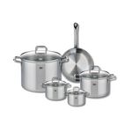 En savoir +Découvrez l'ensemble de cuisine Elo Profi Citrin, composé d'une poêle de cuisson de 24 cm et de quatre faitouts de 12, 14, 20 et 26 cm. Conçus en inox de haute qualité, ces ustensiles de cuisine allient robustesse et performance pour répondre à tous vos besoins culinaires.
