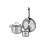 En savoir +Découvrez l'ensemble de cuisine Elo Profi Citrin, comprenant une poêle de cuisson de 28 cm et deux faitouts de 14 et 20 cm. Conçus en inox de haute qualité, ces ustensiles sont parfaits pour tous types de cuisson, y compris l'induction, garantissant une distribution homogène de la chaleur pour des résultats de cuisson optimaux.