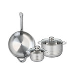 Ensemble de 1 Poêle de cuisson 32 cm et 2 faitouts 16 et 24 cm Elo Profi Brillant