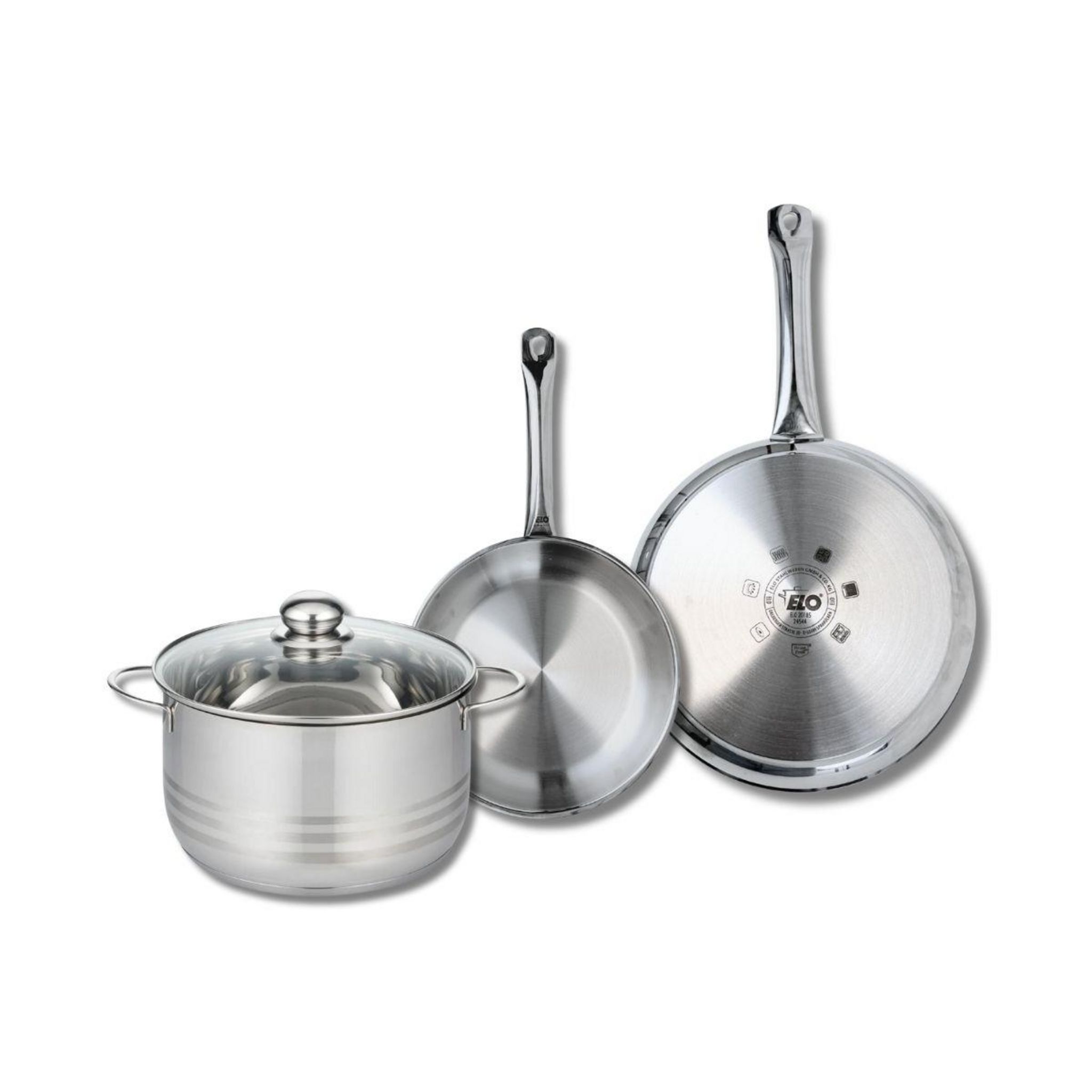 Ensemble de 2 Poêles de cuisson 24 et 28 cm et 1 faitout 24 cm Elo Profi Brillant