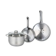 Découvrez l'ensemble de 2 poêles de cuisson de 24 et 28 cm accompagnées d'un faitout de 24 cm de la gamme Profi Brillant d'Elo. Conçues en acier inoxydable de haute qualité, ces poêles et faitout se distinguent par leur robustesse et leur capacité à résister à une utilisation quotidienne. Les poêles