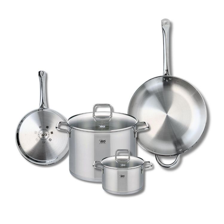 Découvrez l'ensemble de cuisine Elo Profi Citrin, composé de deux poêles de cuisson de 24 et 32 cm ainsi que de deux faitouts de 16 et 26 cm. Conçus en inox de haute qualité, ces ustensiles de cuisine allient robustesse et performance. Leur surface en inox sans revêtement garantit une cuisson saine,