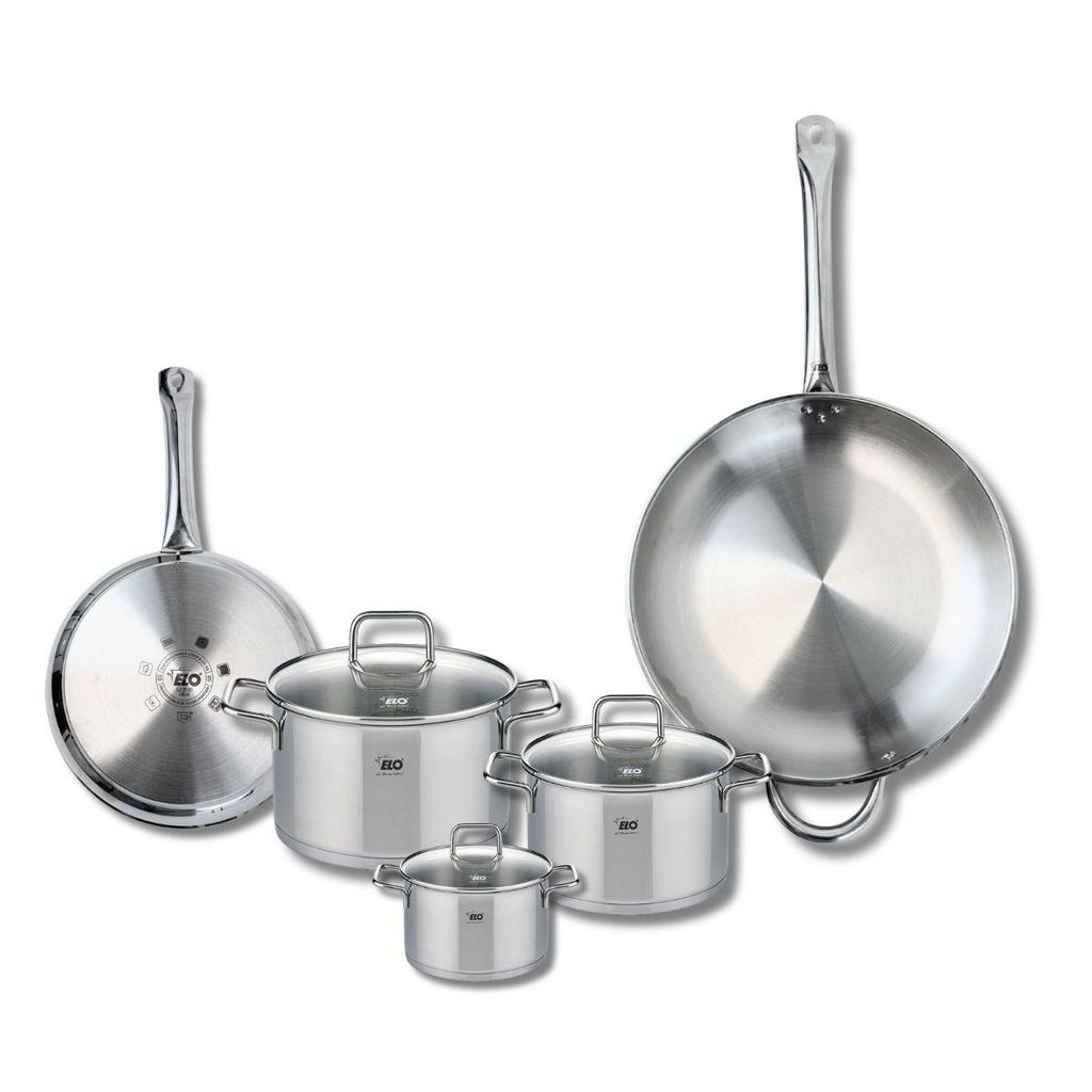 Découvrez l'ensemble de cuisine Elo Profi Citrin, composé de 2 poêles de cuisson de 24 et 32 cm, ainsi que de 3 faitouts de 12, 16 et 20 cm. Conçus en inox de haute qualité, ces ustensiles sont idéaux pour une cuisson saine et savoureuse. Grâce à leur robustesse, cet ensemble résiste à l'usure du te