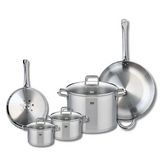 Découvrez l'ensemble de cuisine Elo Profi Citrin, alliant élégance et fonctionnalité. Ce lot comprend deux poêles de cuisson de 24 et 32 cm, ainsi que trois faitouts de 14, 16 et 26 cm, tous conçus en inox robuste, sans revêtement et sans PFAS.Les poêles Profi Therm, idéales pour saisir, rôtir ou fa
