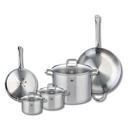 En savoir +Découvrez l'ensemble de cuisine Elo Profi Citrin, alliant élégance et fonctionnalité. Ce lot comprend deux poêles de cuisson de 24 et 32 cm, ainsi que trois faitouts de 14, 16 et 26 cm, tous conçus en inox robuste, sans revêtement et sans PFAS.
