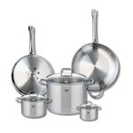 Découvrez l'ensemble de cuisine Elo Profi Citrin, une batterie de cuisine complète et élégante qui transforme votre expérience culinaire. Composée de deux poêles de cuisson de 28 et 32 cm ainsi que de trois faitouts de 12, 16 et 26 cm, cet ensemble en inox est parfait pour tous vos besoins culinaire