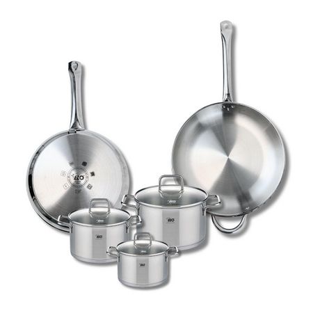 Découvrez l'ensemble de cuisine Elo Profi Citrin, un assortiment complet de 8 pièces qui allie fonctionnalité et élégance. Cet ensemble comprend deux poêles de cuisson de 28 et 32 cm, ainsi que trois faitouts de 14, 16 et 20 cm, tous fabriqués en inox de haute qualité, garantissant robustesse et per