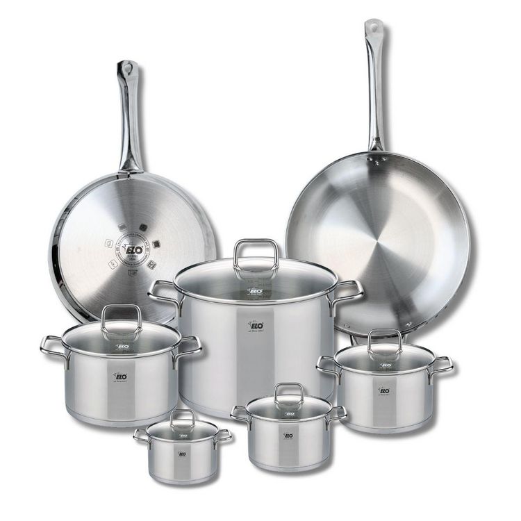 Découvrez l'ensemble de 2 poêles de cuisson et 5 faitouts Elo Profi Citrin, une batterie de cuisine en inox conçue pour répondre aux besoins des chefs amateurs et professionnels. Comprenant des poêles de 28 et 32 cm, ainsi que des faitouts de 12, 14, 16, 20 et 26 cm, cet ensemble offre une polyvalen