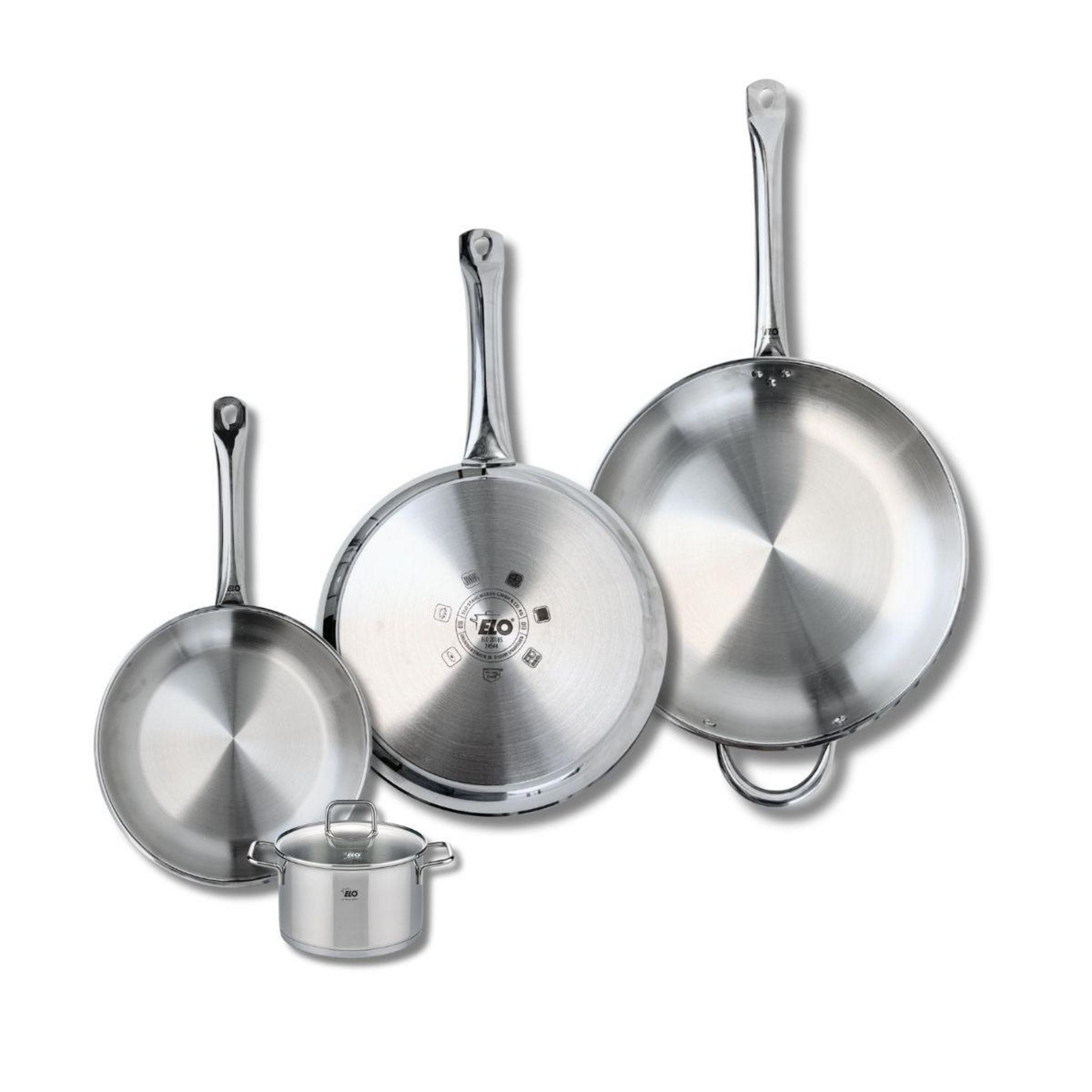 Découvrez l'ensemble de 5 pièces Elo Profi Citrin, comprenant trois poêles de cuisson de 24, 28 et 32 cm ainsi qu'un faitout de 12 cm, parfait pour tous vos besoins culinaires. Conçues en inox de haute qualité, ces poêles et faitouts offrent une robustesse exceptionnelle et une excellente résistance