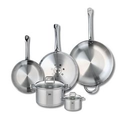 Chaque poêle, conçue en inox sans revêtement, offre une excellente conductivité thermique, garantissant une cuisson uniforme et précise. La robustesse de l'inox assure une longévité accrue, même avec une utilisation quotidienne. Tous les produits sont compatibles avec les plaques à induction, rendant cette batterie de cuisine polyvalente et adaptée à tous les types de cuisines.