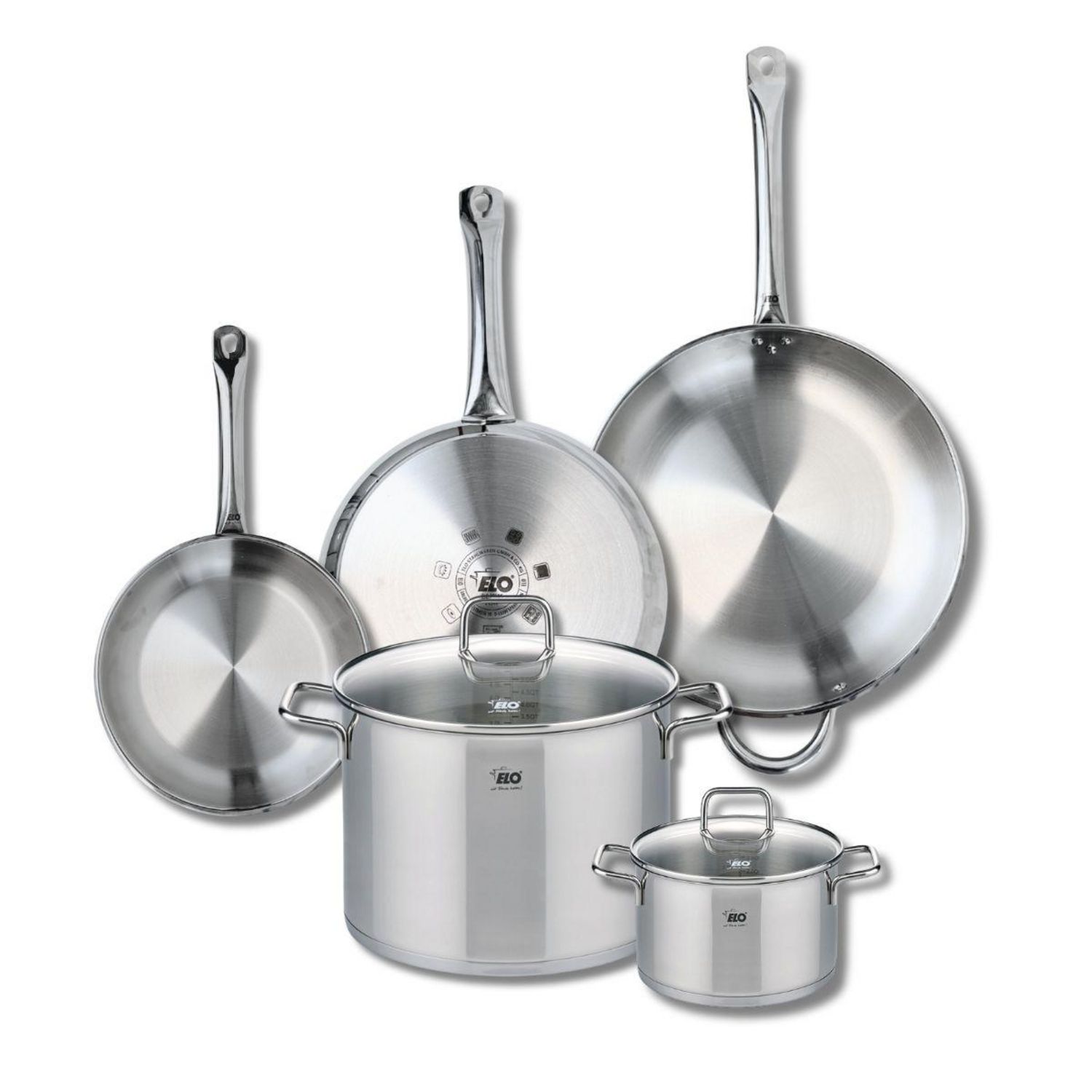 En savoir +Découvrez l'ensemble de 3 poêles de cuisson et 2 faitouts Elo Profi Citrin, une batterie de cuisine idéale pour tous vos besoins culinaires. Composée de poêles de 24, 28 et 32 cm, ainsi que de faitouts de 16 et 26 cm, cet ensemble en inox est conçu pour résister à l'épreuve du temps tout en offrant une performance de cuisson optimale.