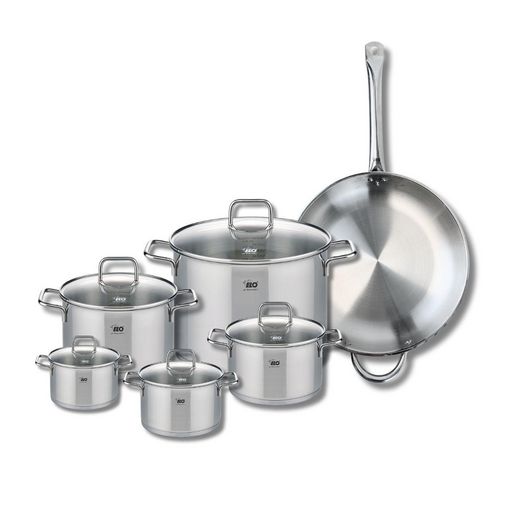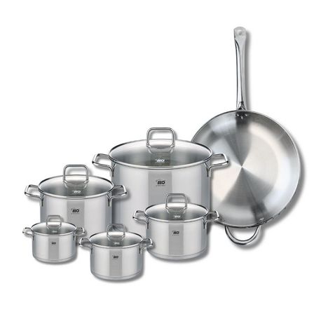 Découvrez notre batterie de cuisine en inox sans PFAS de la marque Allemande ELO, reconnue pour sa qualité. Ce set polyvalent comprend une poêle à frire de 32 cm, et 5 faitouts de 12, 14, 16, 20 et 26 cm de diamètre. L'inox est un matériau facile à entretenir, robuste, résistant à la corrosion et esthétique. Ces ustensiles sont compatibles avec tous les types de feux dont l'induction, et passent au four (sauf les couvercles).