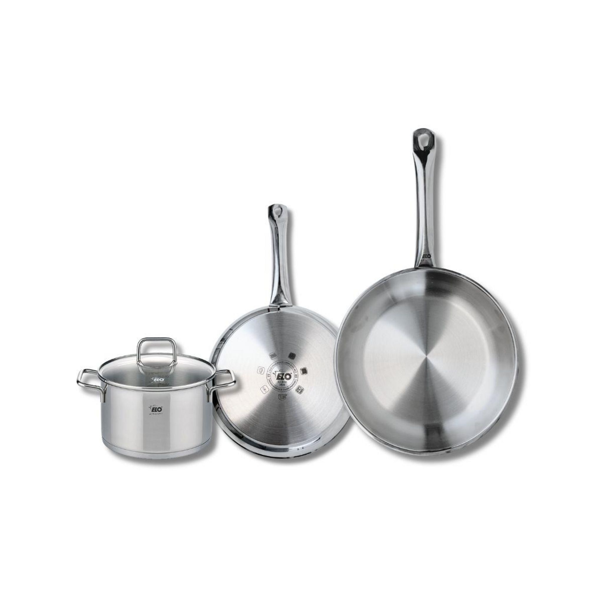 Découvrez le set de cuisson incontournable pour tous les amateurs de cuisine : le lot comprend deux poêles de cuisson de 24 et 28 cm ainsi qu'un faitout de 16 cm de la gamme Elo Profi Citrin. Conçus en inox, ces ustensiles allient robustesse et efficacité, tout en étant compatibles avec toutes les s