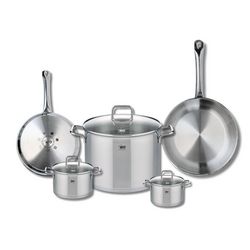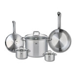 Découvrez le set de cuisine idéal pour vos préparations culinaires : le lot comprend deux poêles de cuisson de 24 et 28 cm ainsi que trois faitouts de 12, 14 et 26 cm, tous issus de la collection Elo Profi Citrin. Conçus en inox de haute qualité, ces ustensiles sont parfaits pour une cuisson saine e