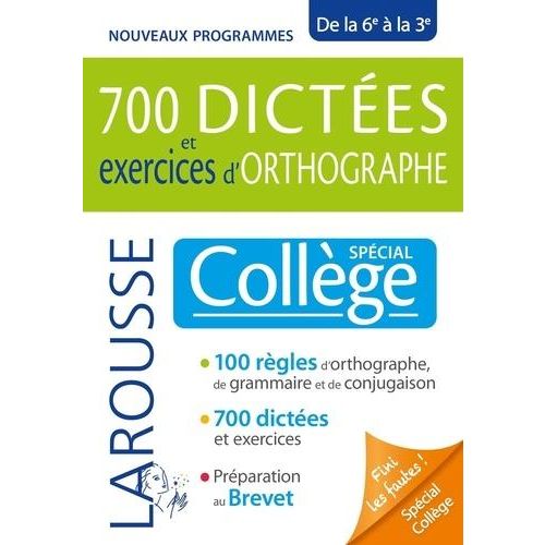 En savoir +Pour réussir la dictée du premier coup et en finir avec les fautes ! Un ouvrage progressif avec 4 niveaux de difficulté correspondant aux altes de 6e, 5e, 4e et 3e. 10 entraînements spécial brevet pour préparer la dictée de l'examen. 100 fiches expliquant de manière simple et accessible l'ensemble des difficultés d'orthographe, de grammaire et de conjugaison étudiées au collège. Une dictée par fiche, adaptée à chaque niveau. Les corrigés à la fin de chaque partie, pour que l'élève puisse progresser en toute autonomie.