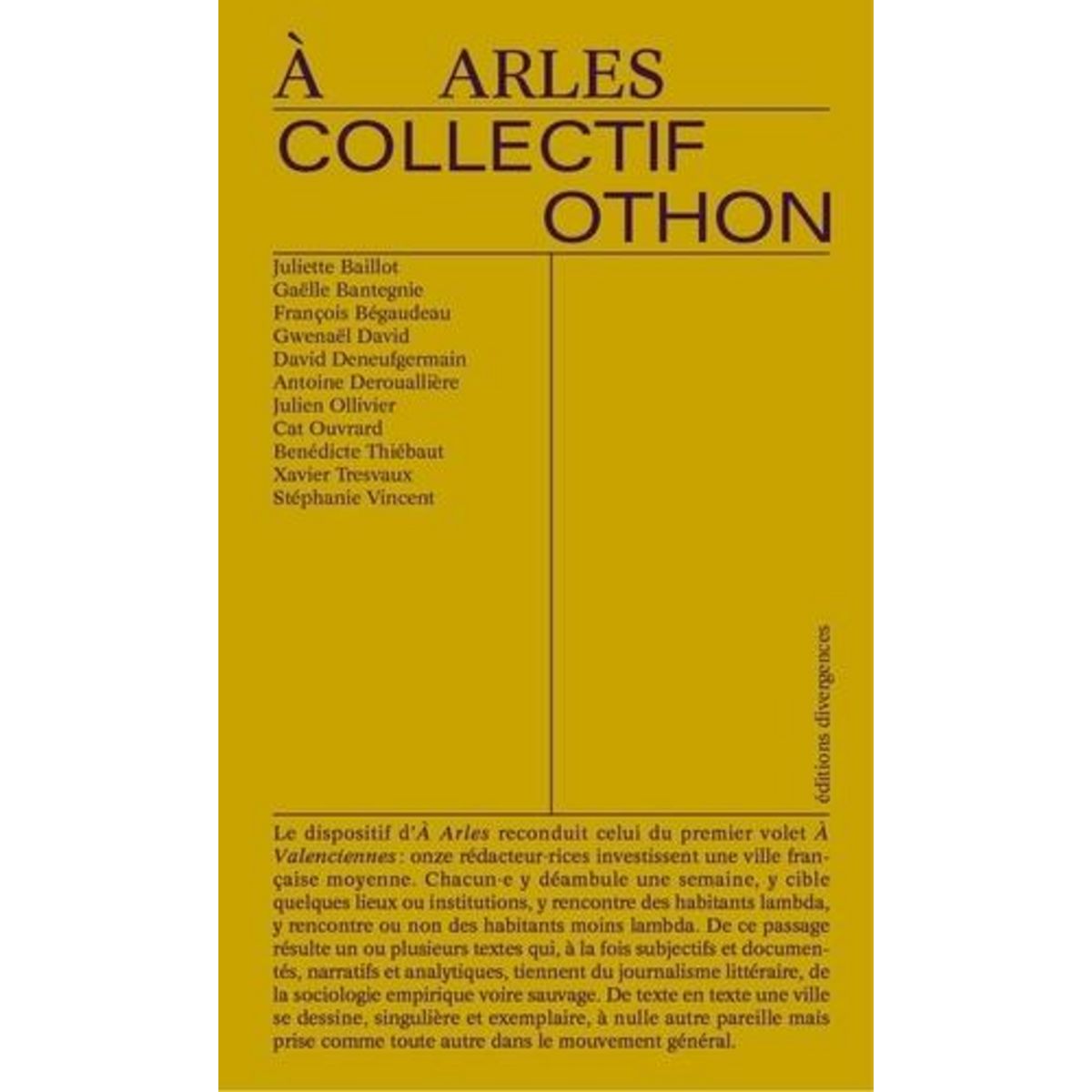 Le dispositif d'A Arles reconduit celui du premier volet A Valenciennes : onze rédacteurs-trices investissent une ville française moyenne. Chacun-e y déambule une semaine, y cible quelques lieux ou institutions, y rencontre des habitants lambdas, y rencontre ou non des habitants moins lambdas. De ce passage résulte un ou plusieurs textes qui, à la fois subjectifs et documentés, narratifs et analytiques, tiennent du journalisme littéraire, de la sociologie empirique voire sauvage. De texte en texte une ville se dessine, singulière et exemplaire, à nulle autre pareille mais prise comme toute autre dans le mouvement général.