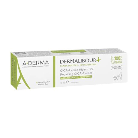 DERMALIBOUR+ CICA-Crème réparatrice assainissante apaise immédiatement, répare* et assainit les peaux irritées de toute la famille dès la naissance. Les zones du corps et du visage qui rougissent, grattent, piquent ou tiraillent bénéficient de sa formule efficace dès 24h¹ et 100 % naturelle. Elle contient seulement 14 ingrédients essentiels, dont l’extrait apaisant, réparateur et anti-irritant de Plantules d’Avoine Rhealba® et le complexe de Cuivre-Zinc qui limite le risque de prolifération bactérienne. Grâce à DERMALIBOUR+ CICA-Crème réparatrice assainissante, les peaux irritées ne sont plus seules face aux agressions quotidiennes. Avoine Rhealba® issue de l'agriculture biologique Info vegan : sans ingrédient d'origine animale * Favorise la réparation de la peau ¹ Etude clinique menée sur 76 sujets (nourrissons, enfants, adultes) – 2 à 3 applications par jour pendant 21 jours.