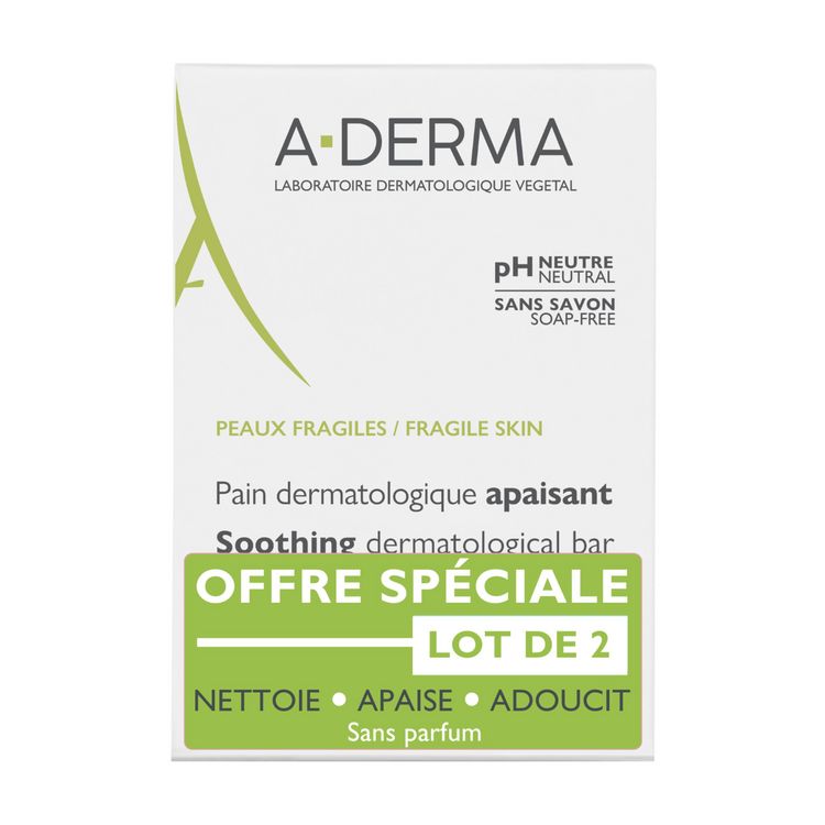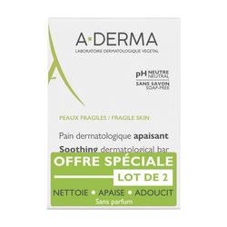 A-DERMA - Les Indispensables Duo Pain Dermatologique Apaisant 2x100gr
