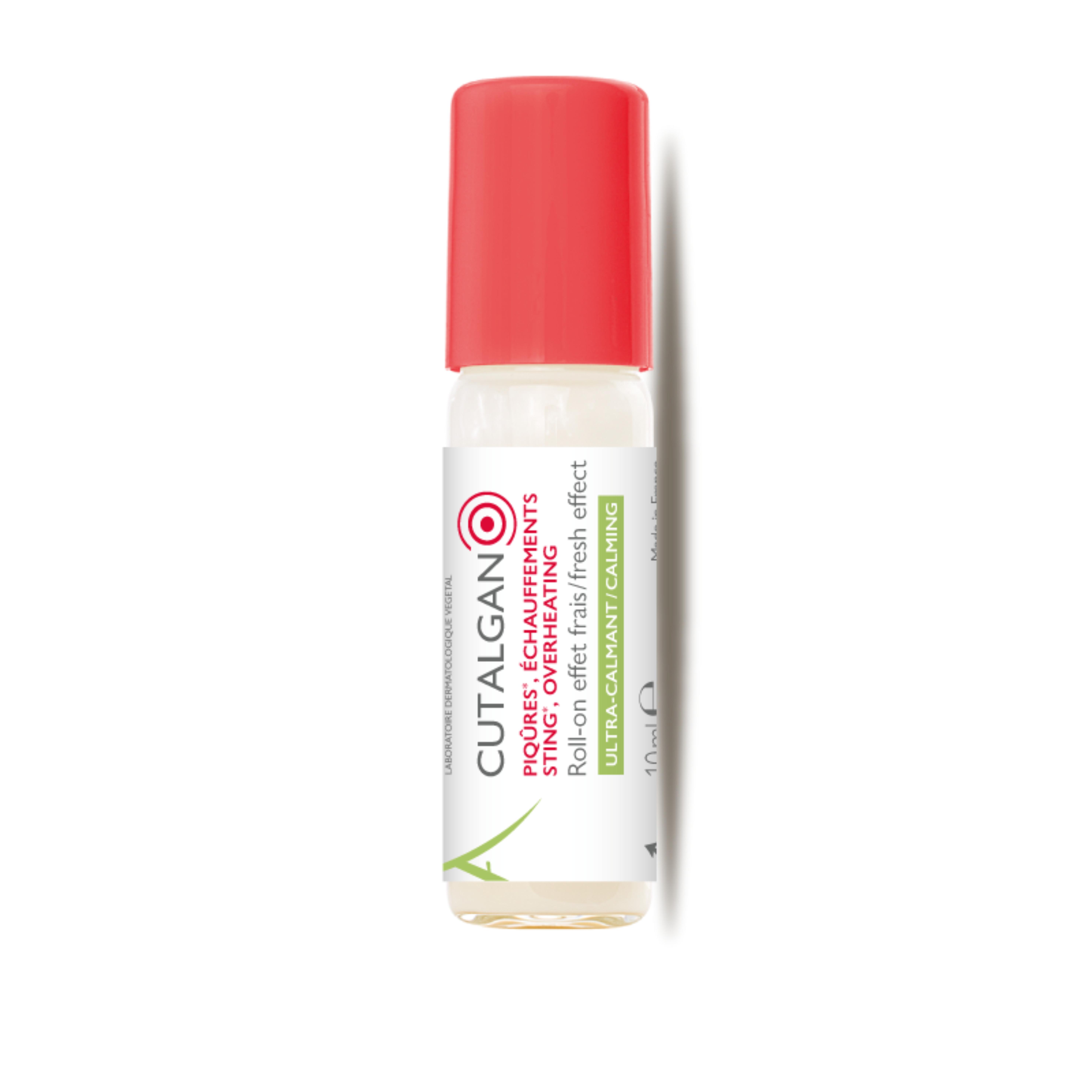 CUTALGAN roll-on effet frais ultra-calmant apaise la peau lorsqu’elle pique, chauffe ou gratte. Idéal en cas de piqûres d’insectes ( moustiques...), démangeaisons, échauffements et mêmes les irritations, ce format poche SOS vous accompagne partout. Il a été spécialement formulé pour procurer un apaisement immédiat et durable jusqu’à 6h¹ . Sa formule contient deux extraits apaisants et calmants : l’extrait de Plantules d’Avoine Rhealba® et l’extrait de liane du Pérou, pour soulager la peau dès la 1ère application. La bille en métal apporte un effet frais renforcé et permet de cibler la zone douloureuse en délivrant la bonne dose et en gardant les mains propres grâce à la texture brevetée² "effet pansement" qui ne coule pas. Avec une formule haute tolérance et à 98% d'ingrédients d'origine naturelle, il est utilisable sur toutes les peaux fragiles, du nourrisson à l’adulte et sur toutes les zones du visage, le corps, les mains et le cuir chevelu. Appliquer autant de fois que nécessaire et jusqu'à 6 fois par jour. Info Vegan : sans ingrédient d'origine animale ¹ étude clinique sur 60 sujets. ² brevet déposé