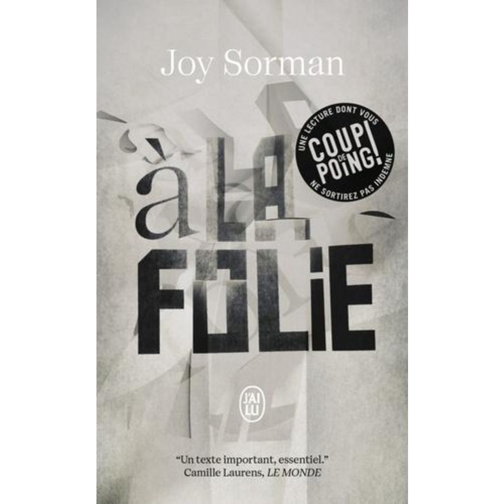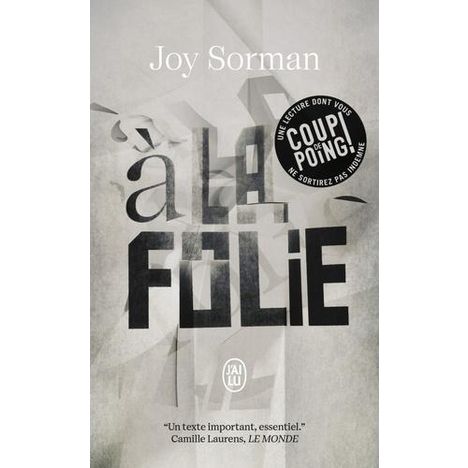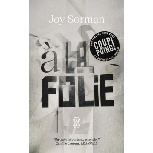 Ce jour-là j'ai compris ce qui me troublait. Peut-être moins le spectacle de la douleur, de la déraison, du dénuement, que cette lutte qui ne s'éteint jamais, au bout d'un an comme de vingt, en dépit des traitements qui érodent la volonté et du sens de la défaite, ça ne meurt jamais, c'est la vie qui insiste, dont on ne vient jamais à bout malgré la chambre d'isolement et les injections à haute dose . Durant toute une année, Joy Sorman s'est rendue au pavillon 4B d'un hôpital psychiatrique et y a recueilli les paroles de ceux que l'on dit fous et de leurs soignants. Franck, Maria, Catherine, Youcef, Barnabé et Robert sont les inoubliables personnages d'A la folie, le roman de leur vie enfermée.