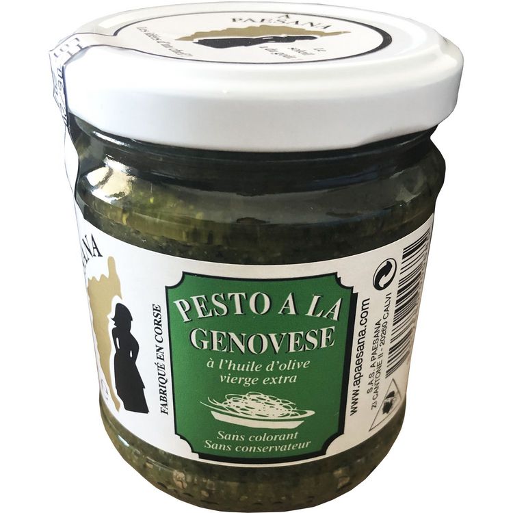 Basilic, Huile d'olive vierge extra, Pecorino, Parmesan, Cajoux, Ail, Sel.