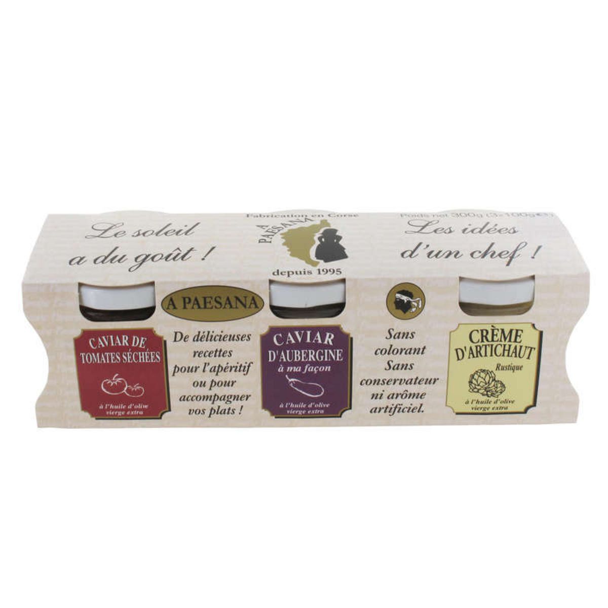 Tripack caviars de tomates séchées d'aubergine et d'artichaut
