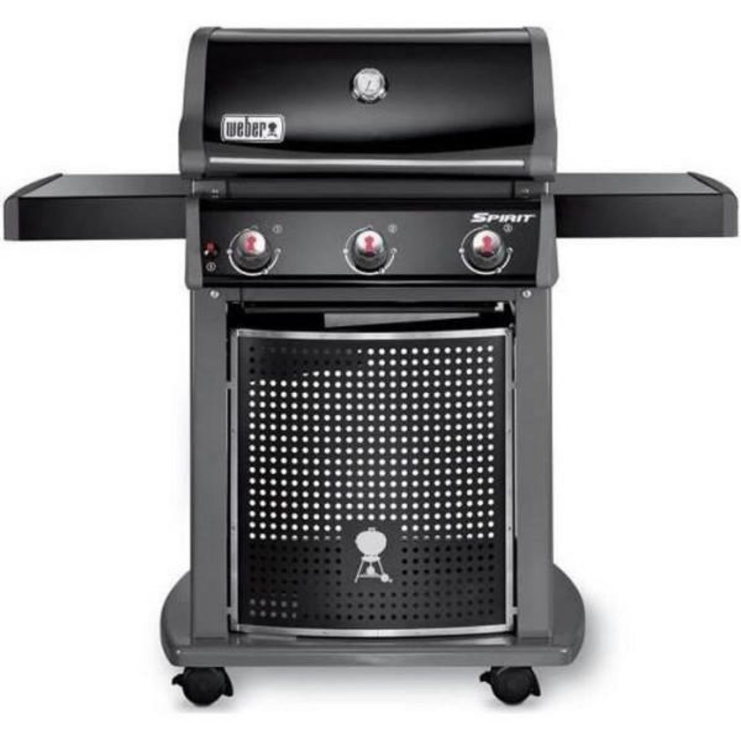 Barbecue a gaz WEBER Spirit Classic E-310 - Noir - Cuve en fonte d'aluminium, couvercle avec thermometre intégré en acier émaillé, 2 grilles de cuisson en acier émaillé - Grille de réchauffage : 57x12cm, 3 brûleurs en acier inoxydable, 5 barres flavorizer en acier émaillé pour protéger les brûleurs
