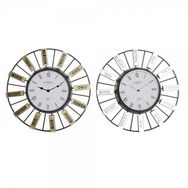 Horloge Murale DKD Home Decor 40 x 6,4 x 40 cm Verre Argenté Doré Fer (2 Unités)
