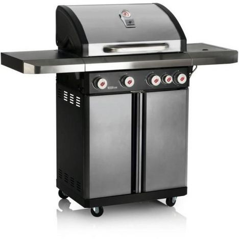 En savoir +Découvrez le barbecue gaz Landmann Rexon Cook 4.1 Inox avec 4 feux et un brûleur latéral. Sa grille de cuisson en fonte vous permettra de réaliser des cuissons parfaites. Profitez d'une cuisson polyvalente grâce au brûleur latéral. Sa structure en inox lui confere solidité et durabilité. Idéal pour des repas en extérieur avec jusqu'a 12 convives.