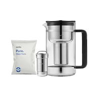 Découvrez la carafe filtrante Aarke Purifier Large de 2,84 litres, conçue en verre et acier inoxydable. Elle améliore la qualité et le goût de l'eau du robinet grâce à une filtration rapide en 3 à 5 minutes utilisant la technologie développée avec BWT. La carafe dispose d'un indicateur manuel de cha